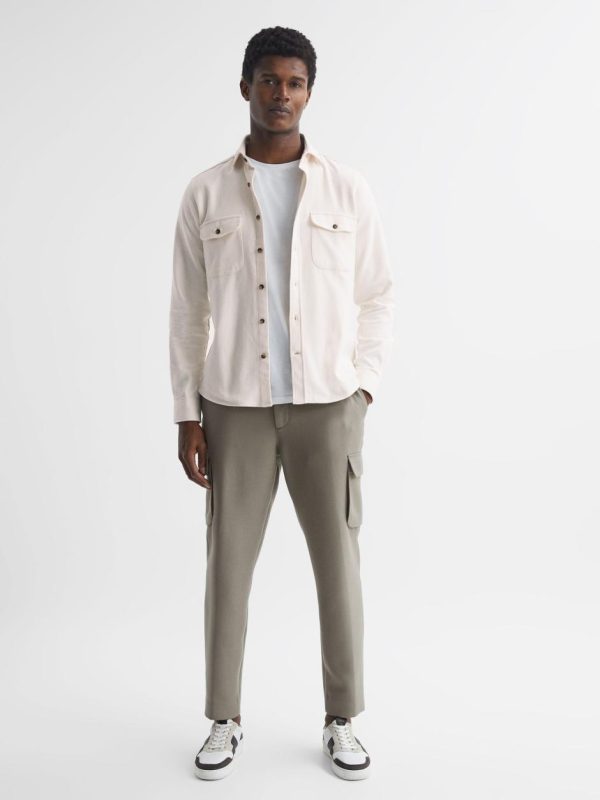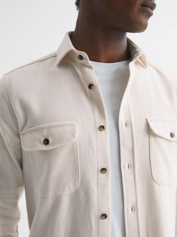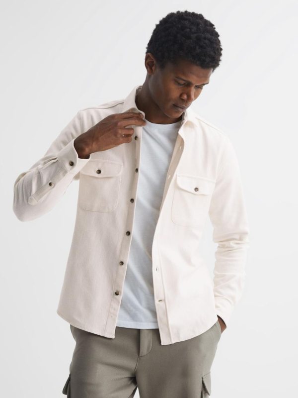 The Burley in ivory overshirt is the ideal trans-seasonal choice. It s crafted from a lightweight cotton blend which layers easily for cooler days or works as your final layer when the climate warms. The twin pocket design gives it a utilitarian feel whilst the slim fit lends a refined finish. Style with casual trousers and trainers for a sleek edit.