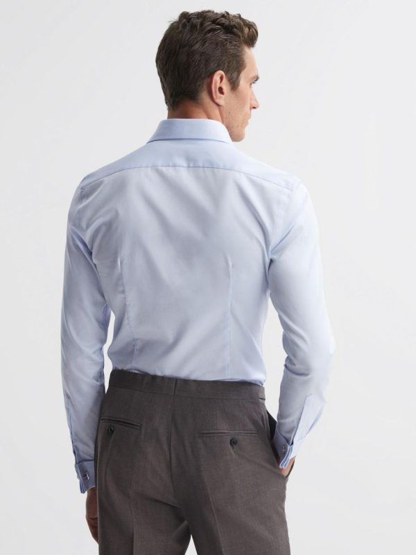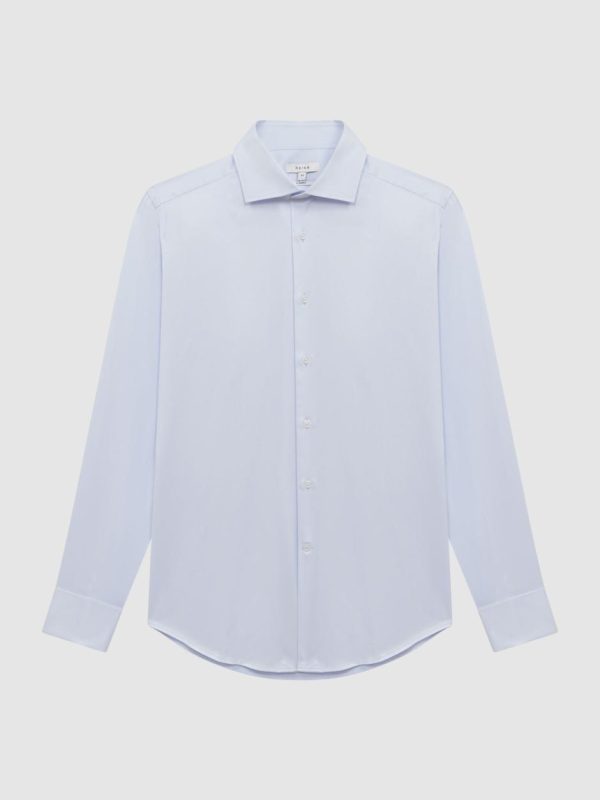 Men Reiss Shirts | Premote Slim Fit Cotton Cutaway Collar Shirt Soft Blue
