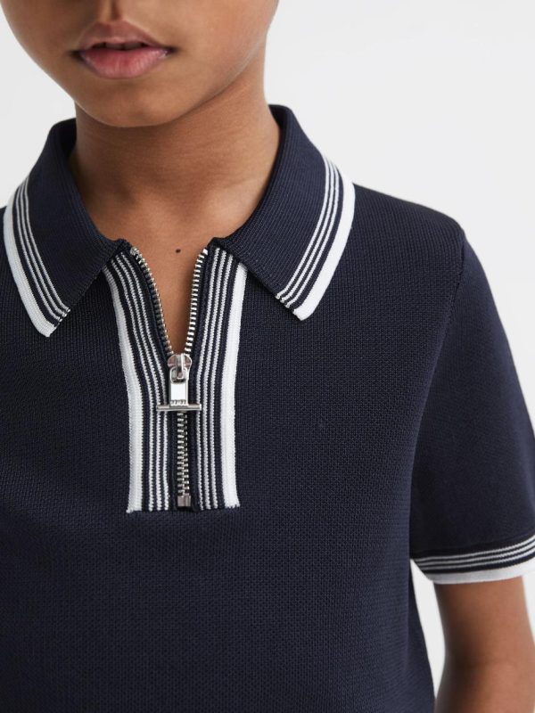 Elevate your child’s casual wardrobe with this sporty Regency polo shirt in classic navy. Designed with premium textured fabric and featuring crisp stripe accents on the collar and sleeves for added style. The convenient half-zip neckline makes dressing easy while creating a polished look. Perfect for pairing with coordinating shorts and sneakers for active days, or dress it up with chinos for more formal occasions.