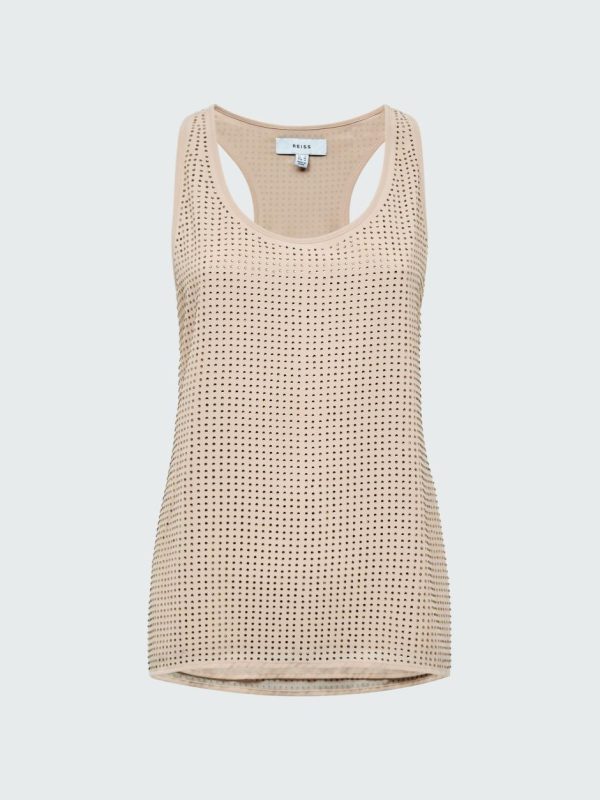 Elevate your wardrobe with the stunning Brooklyn vest, featuring a glamorous scoop neckline and chic racerback design. This beautifully embellished piece offers versatile styling options – pair it with the matching skirt for a coordinated look or tuck it into your favorite separates for a sophisticated, fashion-forward ensemble that commands attention.
