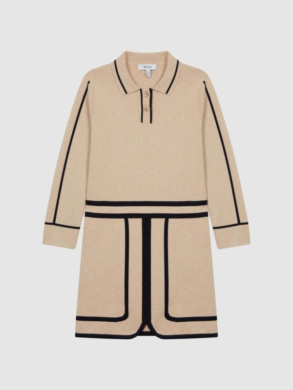 The Layla dress features a contemporary knitted design with a stylish half-buttoned neckline, long sleeves and eye-catching color-blocking. Perfect for pairing with black boots for a chic everyday look that transitions seamlessly from school to weekend outings.
