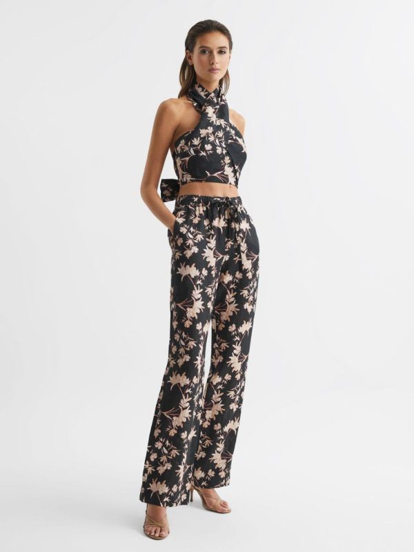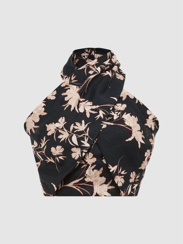 Women Reiss Tops | Ally Printed Halter Neck Cropped Top Black/blush
